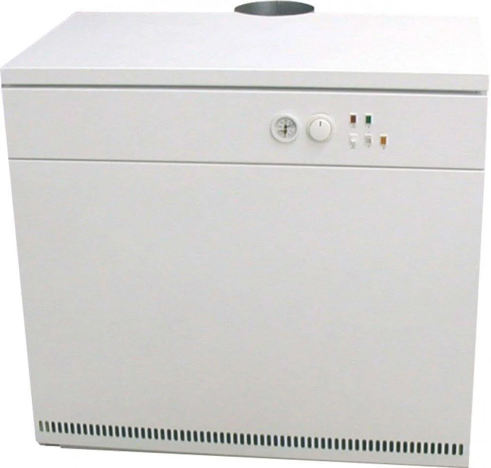 Теплообмінник котла зібраний з окремих елементів із сірого чавуну, що гарантує високу стійкість до корозії та температурних перепадів. Для оптимальної роботи чавунного теплообмінника рекомендована температура зворотної лінії системи опалення має бути не менше 45°C. Газовий пальник з трубками з нержавіючої сталі забезпечує ефективне згоряння палива з мінімальними викидами димових газів, що сприяє високому коефіцієнту корисної дії до 92%. Котел є одноконтурним, призначеним виключно для опалення, і працює від електромережі 230 В, використовуючи електрозапалювання для запуску.