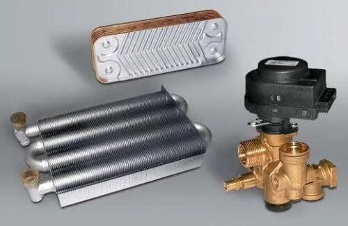 Котел має роздільний теплообмінник, де монотермічний головний теплообмінник гарантує необхідну потужність та ефективність. Вторинний теплообмінник для ГВП виготовлений з нержавіючої сталі AISI 316 L (12 пластин), що забезпечує високу площу теплообміну та стабільну температуру гарячої води. Захист від замерзання активується при 5°C, підвищуючи температуру в котлі до 15°C, а функція захисту від блокування насоса запобігає його заклинюванню після тривалих періодів бездіяльності. Функція пост-циркуляції захищає від перегріву, балансуючи температуру подачі та обратки. Електричний триходовий клапан забезпечує швидке та надійне перемикання між контурами опалення та ГВП. Автоматичний бай-пас підтримує циркуляцію води в первинному теплообміннику, захищаючи його від перегріву. Для зручності обслуговування передбачена функція очищення димоходу, що спрощує регулювання згоряння.