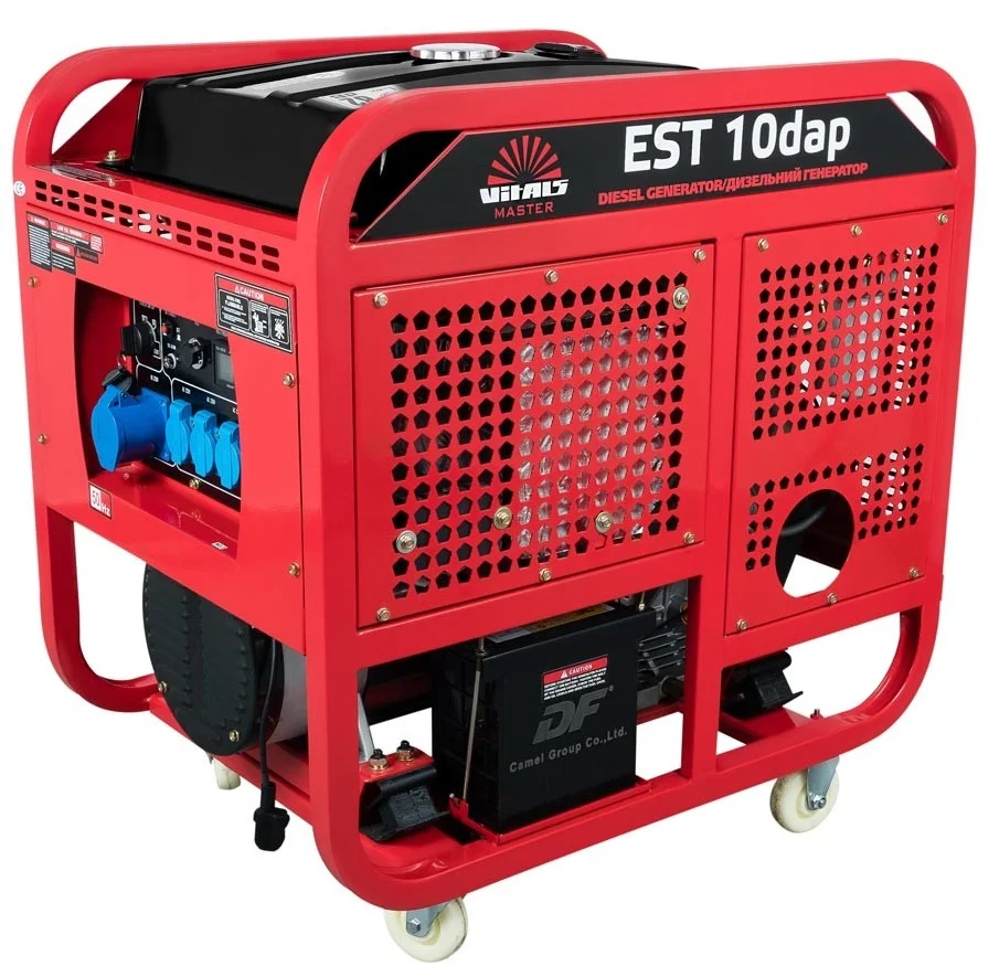 Оснащений двоциліндровим чотиритактним дизельним двигуном V-подібної конфігурації об'ємом 870 см³ та потужністю 22 к.с., генератор Vitals EST 10DAP забезпечує максимальну потужність 10000 Вт. Цей пристрій призначений для стабільного електропостачання в умовах відсутності основної мережі або як резервне джерело живлення.