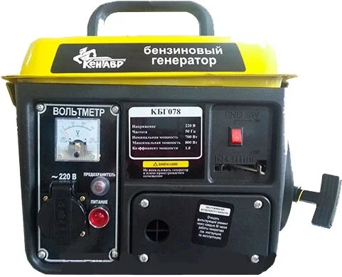 Мобільна бензинова мініелектростанція Кентавр КБГ-078 є компактним та надійним джерелом електроенергії для побутового використання. Вона оснащена двотактним одноциліндровим двигуном внутрішнього згоряння з повітряним охолодженням потужністю 2.5 к.с. та об'ємом 63 см³, який приводить в дію щітковий синхронний генератор зі 100% мідними обмотками ротора та статора. Номінальна потужність генератора становить 700 Вт, а максимальна – 800 Вт.