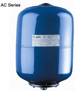 Вертикальний гідроакумулюючий бак Elbi АС-5, розроблений італійським виробником, призначений для ефективного функціонування в системах автономного водопостачання питної води. Його конструкція включає міцний металевий корпус, покритий спеціальною стійкою фарбою синього кольору, що забезпечує тривалий захист від корозії, та змінну мембрану з харчової гуми EPDM. Ця мембрана повністю ізолює воду від контакту з металевими стінками бака, запобігаючи корозії та зберігаючи якість питної води.