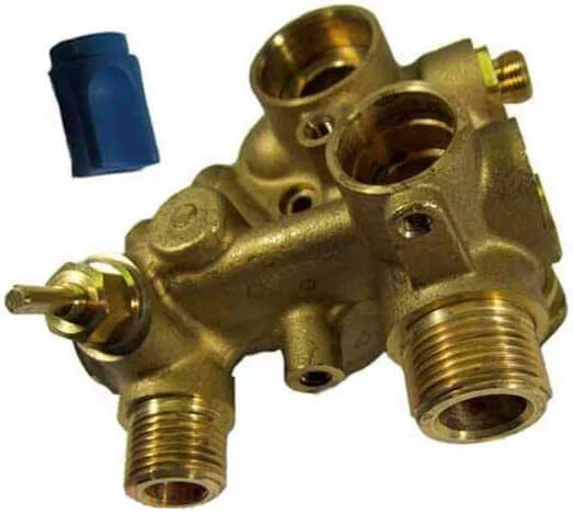 Гідравлічний вузол є ключовим компонентом системи водопостачання газового котла, відповідаючи за підключення до магістралі холодної води та її розподіл. Конструкція групи входу забезпечує надійне з'єднання трубопроводів, регулювання тиску та захист внутрішніх контурів котла від гідравлічних поштовхів. Вузол виготовлений з міцних матеріалів, стійких до корозії та високого тиску, що гарантує довговічність у складних умовах експлуатації.