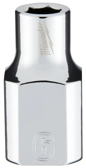 Головка виконана з хромованої хромовано-ванадієвої сталі CR-V, що забезпечує підвищену міцність та стійкість до зносу при роботі з ручним інструментом. Конструкція з шести гранями та коротким профілем дозволяє ефективно працювати в обмежених просторах, де потрібен невеликий кут повороту гайкового ключа. Штамповане позначення розміру (6 мм) на корпусі забезпечує швидку візуальну ідентифікацію серед набору інструментів.