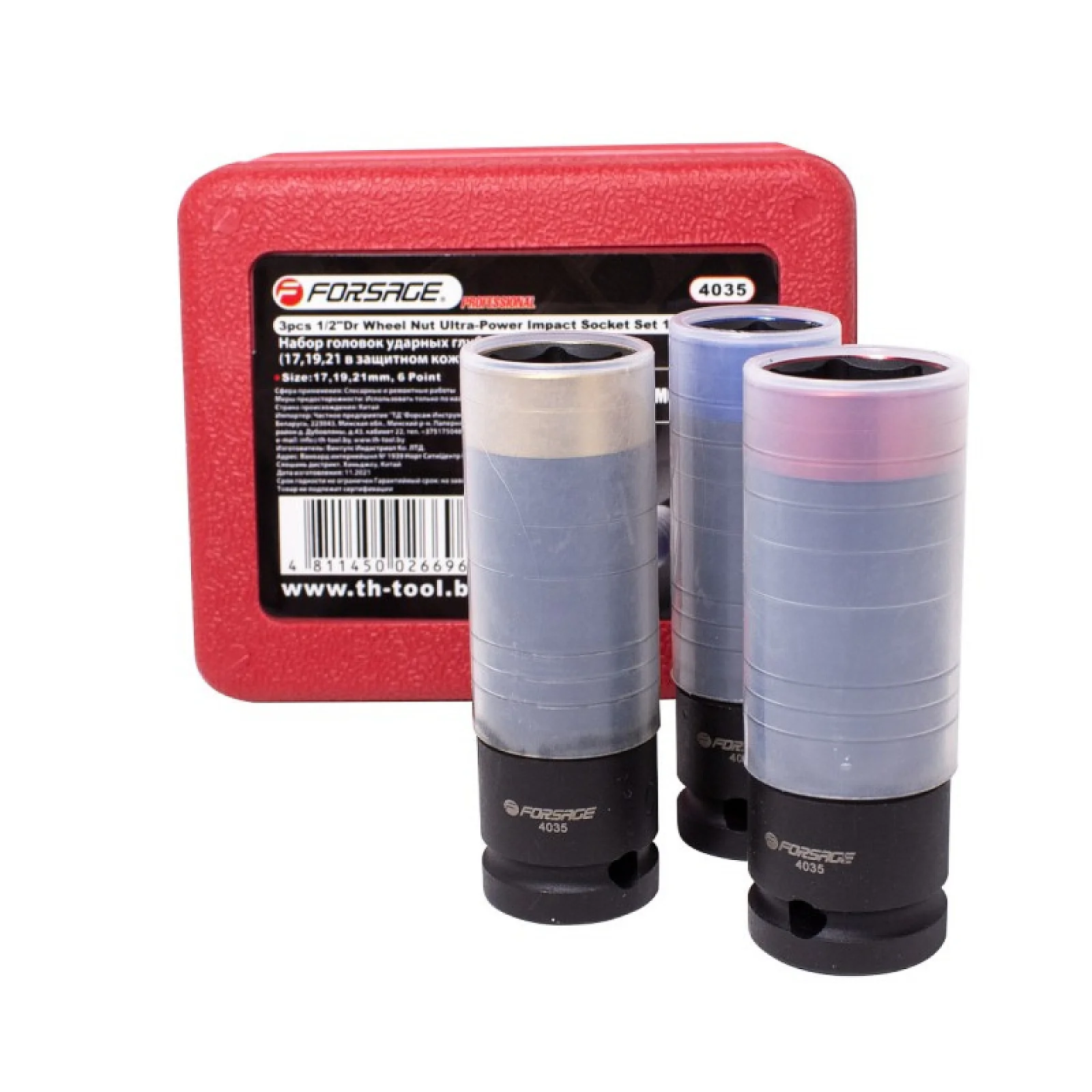Інформація про продукт "Набір головок ударних глибоких тонкостінних в захисному кожусі 3 пр.1/2" 6-гранна (17,19,21мм) Forsage (F-4035)"