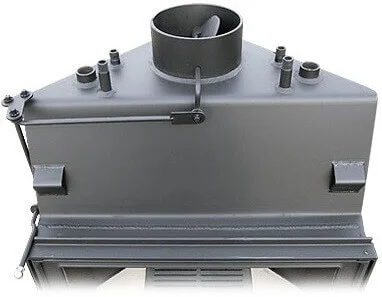 Топка каміна оснащена рамкою з чавуну німецького виробництва та кварцовим склом, здатним витримувати температуру до 900°C, що забезпечує безпеку та довговічність. Вбудована система очищення скла підтримує його прозорість, дозволяючи насолоджуватися видом полум'я. Сталевий теплообмінник об'ємом 32 літри ефективно передає тепло воді, забезпечуючи безперервне опалення протягом усього сезону.