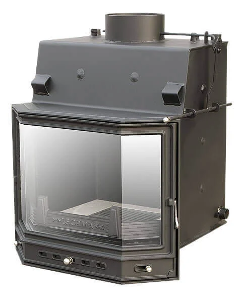 - Зручність використання: Наявність висувного зольника, інтегрованого шибера та зовнішнього підведення повітря спрощує обслуговування та регулювання процесу горіння.