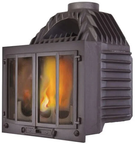 - Висока тепловіддача: Чавунні ребра по всій поверхні корпусу та рухомий дефлектор збільшують площу теплообміну та ККД до 78%.