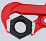 Регулювальна гайка, яку неможливо загубити, дозволяє легко налаштувати розмір губок під конкретний розмір труби. Порошкове покриття, червоного кольору, не лише надає інструменту стильний вигляд, але і захищає його від корозії.