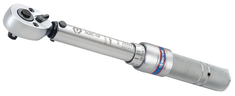 Динамометричний ключ King Tony 3426C-2DF з посадковим квадратом 1/4" призначений для точного затягування різьбових з'єднань у діапазоні від 5 до 25 Нм. Інструмент забезпечує точність вимірювання в межах ±3%, що є важливим для робіт, де потрібне дотримання заданого крутного моменту.