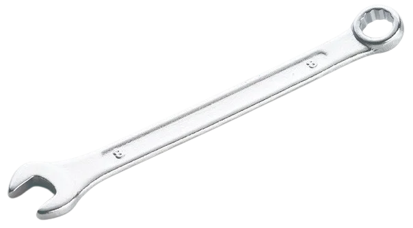 Ріжково-накидний ключ Стандарт 8 мм Сила (201008) є високоякісним інструментом, розробленим для ефективної роботи з кріпленнями середнього розміру. Виготовлений з інструментальної хромованадієвої сталі (Cr-V) методом кування, цей ключ поєднує в собі виняткову витривалість та довговічність, забезпечуючи стабільну роботу навіть в умовах значних навантажень без деформації.