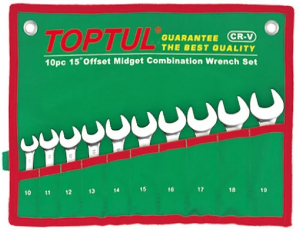 Інформація про продукт "Набір ключів комбінованих укорочених Toptul 10-19 мм 10 од. (GAAA1002)"