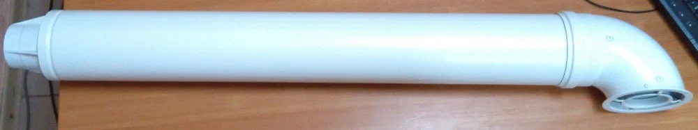 Комплект призначений для організації повітряно-димового каналу газових котлів Buderus за системою «труба в трубі». Зовнішня труба діаметром 100 мм забезпечує приплив повітря з вулиці до камери згоряння, а внутрішня труба 60 мм відводить продукти згоряння. Така конструкція підвищує ефективність роботи котла та безпеку експлуатації.