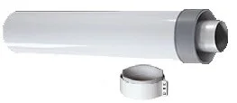 Алюмінієвий подовжувач коаксіального димоходу завдовжки 1000 мм призначений для збільшення довжини штатного димохідного каналу. Конструкція складається з двох концентричних труб діаметром 60 мм (внутрішня) та 100 мм (зовнішня), що забезпечує одночасний відвід продуктів згоряння та приплив свіжого повітря з вулиці для котлів із закритою камерою згоряння. Комплектація включає хомут для надійного кріплення елемента до основної труби, що запобігає роз'єднанню та забезпечує герметичність з'єднання.