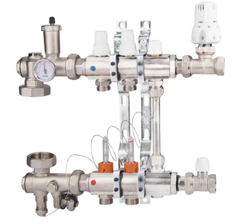 Колекторна група Icma 1" з двома виходами та вбудованими витратомірами призначена для ефективного розподілу теплоносія в системах водяної теплої підлоги. Цей елемент дозволяє точно регулювати потік у кожному окремому контурі, забезпечуючи оптимальний температурний режим та підвищуючи енергоефективність опалення.