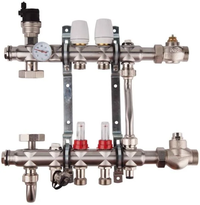 • Точне регулювання потоку: Наявність витратомірів дозволяє точно налаштовувати об'єм теплоносія в кожному контурі в діапазоні від 0,5 до 5 л/хв, забезпечуючи рівномірний розподіл тепла незалежно від довжини контурів.