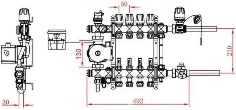 - Точне регулювання потоку: Вбудовані витратоміри дозволяють точно контролювати та регулювати об'єм теплоносія в кожному окремому контурі від 0.5 до 5 л/хв, забезпечуючи оптимальний тепловий режим та запобігаючи нерівномірному нагріву.