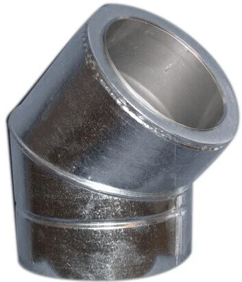 Двостінне димохідне коліно з кутом 45° призначене для ефективної зміни напрямку димохідної системи, забезпечуючи надійне відведення продуктів згоряння. Внутрішня труба виготовлена з нержавіючої сталі товщиною 0,8 мм, що гарантує високу стійкість до агресивних середовищ та високих температур, тоді як зовнішній кожух виконаний з оцинкованої сталі. Завдяки утепленій конструкції з внутрішнім діаметром 130 мм, цей елемент є оптимальним рішенням для створення безпечного та довговічного димоходу.