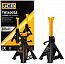 Комплект рейкових підставок під авто JCB Tools JCB-TH56002A — надійне рішення для фіксації легкових автомобілів під час ремонту чи обслуговування. Пара підставок забезпечує вантажопідйомність до 6 тонн, що ідеально підходить для легкового та легковантажного транспорту. Завдяки рейковому механізму з храповиком та подвійною системою фіксації (штифт + храповик), досягається високий рівень безпеки при роботі.