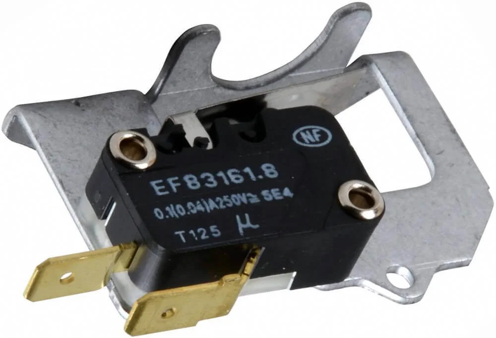 Мікроперемикач призначений для контролю тиску газу в системах опалення. Конструкція включає корпус із збіркою контактів та вбудований важіль для активації, що забезпечує надійне спрацьовування при зміні положення газового клапана. Пристрій монтується безпосередньо на котлі і відіграє ключову роль у ланцюгу безпеки, перериваючи електричну схему у разі недостатнього тиску палива.