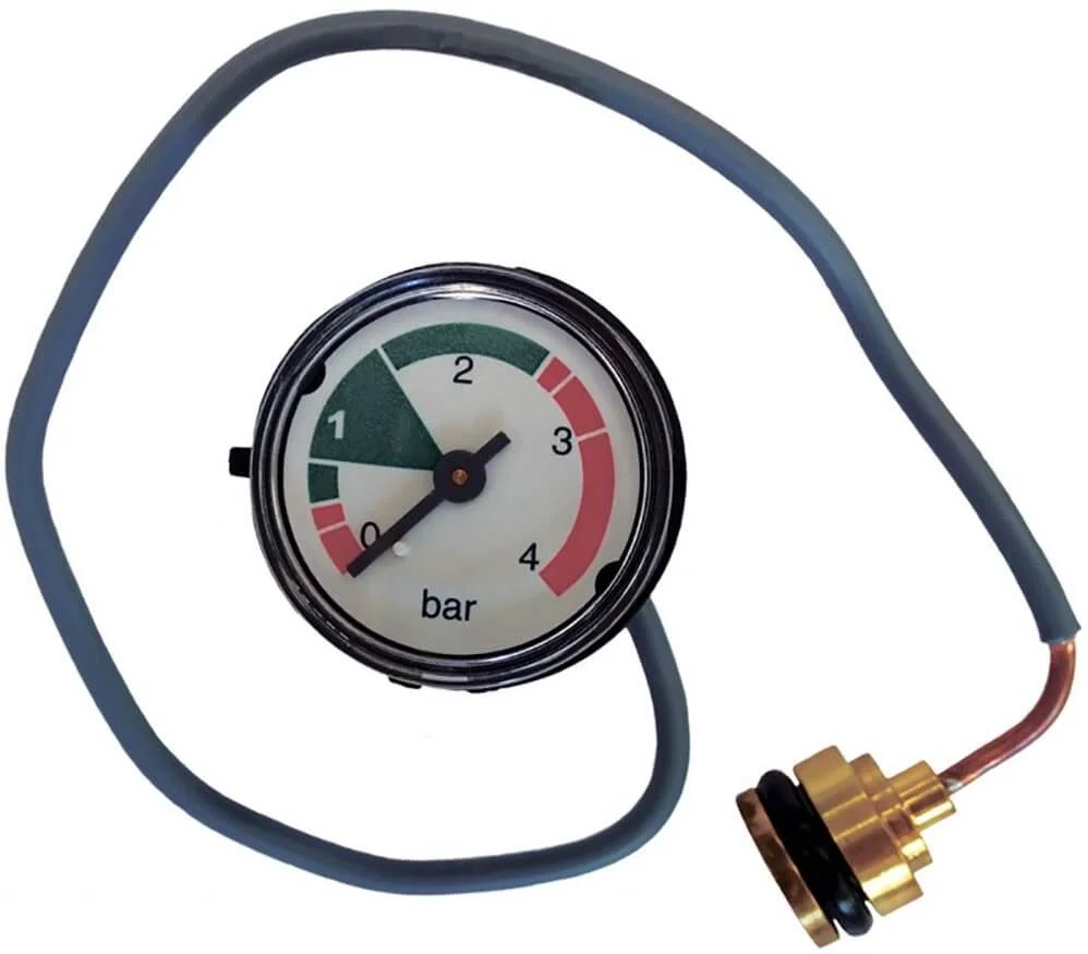 Манометр призначений для візуального контролю тиску води в системі опалення газового котла Baxi Main 5. Прилад забезпечує оперативний моніторинг стану системи, що дозволяє своєчасно виявити падіння тиску та запобігти можливим несправностям. Встановлюється на передній панелі котла, має компактні розміри та зручну циферблатну шкалу для зняття показань.