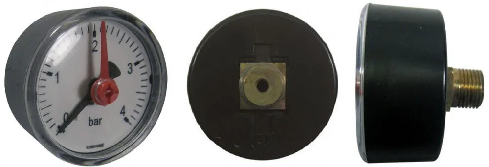 Манометр призначений для візуального контролю тиску води в системі опалення газових котлів. Пристрій забезпечує точні показання в робочому діапазоні, що дозволяє оперативно відстежувати стан системи та запобігати аварійним ситуаціям, пов'язаним із падінням або перевищенням тиску.