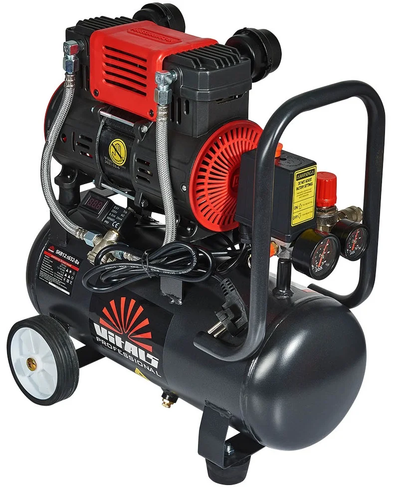 Безмасляний поршневий компресор Vitals Professional SKB12.t632-8a з прямим приводом забезпечує подачу стисненого повітря без домішок мастила, що є критично важливим для застосувань у медицині, фармакології, харчовій та електронній промисловості. З потужністю 1520 Вт та продуктивністю 127 л/хв, цей компресор з 12-літровим ресивером здатний підтримувати максимальний тиск до 8 бар.