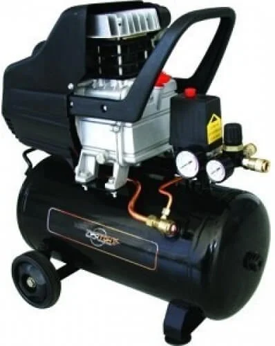 Поршневий компресор з прямим приводом та безмасляним двигуном потужністю 1,5 кВт забезпечує продуктивність 210 л/хв та максимальний тиск 8 бар. Модель оснащена ресивером об'ємом 25 літрів, що дозволяє підтримувати стабільну подачу повітря та зменшує частоту включень двигуна для короткочасних задач.