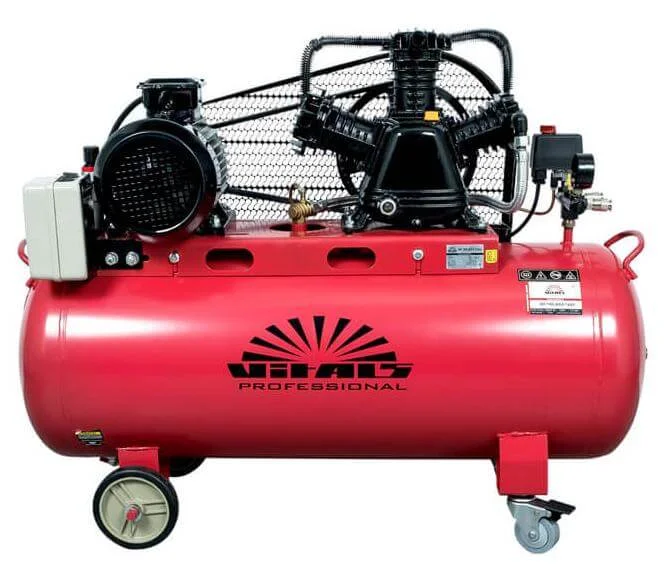 Поршневий компресор з ремінним приводом Vitals Professional GK 100j 653-12a3 розроблений для інтенсивної експлуатації, забезпечуючи високу продуктивність 303 л/хв та максимальний тиск 12 бар. Його конструкція з ремінним приводом сприяє значно більшому моторесурсу порівняно з коаксіальними моделями, а також знижує рівень шуму під час роботи до 92 дБ.