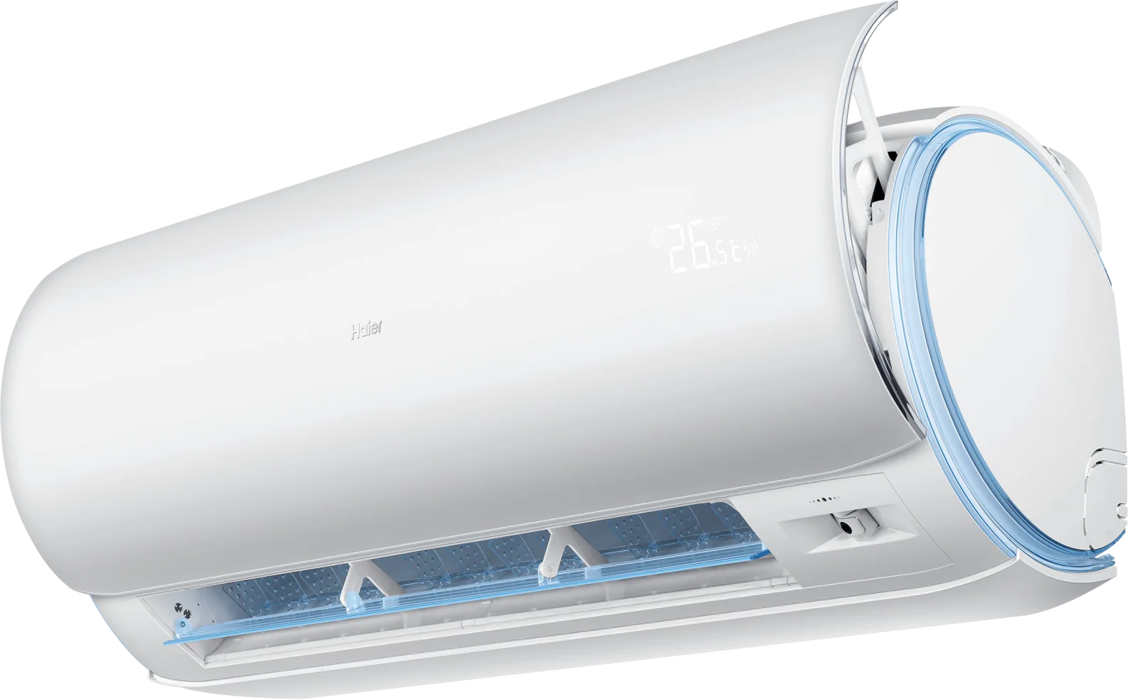 Кондиціонер підтримує роботу в режимі обігріву при зовнішніх температурах до -15°С, що робить його придатним для використання в холодну пору року. Особливістю моделі є багатостороння подача повітря не тільки з основного сопла, а й з бічних отворів, а також автоматичне керування вертикальними та горизонтальними жалюзі для рівномірного розподілу потоків. Вбудований Wi-Fi модуль дозволяє здійснювати віддалене керування за допомогою мобільного пристрою.