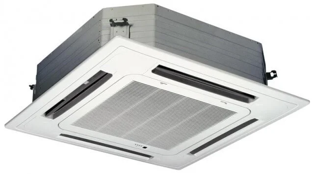 Касетний кондиціонер, призначений для встановлення у підвісні стелі, забезпечує ефективне підтримання комфортного мікроклімату у приміщеннях великої площі. Завдяки технології чотиристоронньої подачі повітря, він гарантує рівномірний та швидкий розподіл охолодженого або нагрітого повітря по всьому об'єму, що є критично важливим для комерційних та адміністративних просторів.