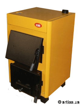 Основой котла является стальной теплообменник прямоугольной формы, состоящий из топки, корпуса и газохода. Водный объем котла - водяной рубашка - образуется между внешними стенками теплообменника, топкой и дымоходом. В нижней части теплообменника организована камера сбора золы, которая ограничивается по бокам стенками теплообменника, сверху колосниковой решеткой, снизу - поддоном. Внешне теплообменник покрытый декоративным кожухом.