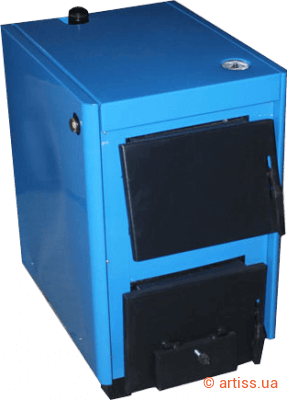На передней стенке теплообменника размещены дверцы: для обслуживания колосниковой решетки, зольную камеры, для загрузки топлива, для очистки конвективного газохода. На нижней дверце закреплено воздушную заслонку с регулировочным винтом, который предназначен для ручной слепи количества воздуха, подаваемого в топку. На задней стенке теплообменника закреплено дымоход с шибером, который позволяет регулировать разрежение за котлом. Температура воды на выходе из котла контролируется термометром.