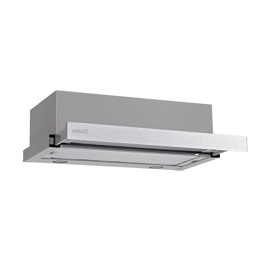Вбудована телескопічна витяжка CATA TF 2003 60 з нержавіючої сталі ефективно інтегрується в кухонні меблі, забезпечуючи чистоту повітря та мінімальну помітність. Її висувна конструкція дозволяє збільшити площу захоплення випарів під час готування, а після використання легко ховається, зберігаючи естетику кухонного простору. Корпус з нержавіючої сталі DurAlum стійкий до корозії та відбитків пальців, що спрощує догляд та підтримує охайний вигляд.