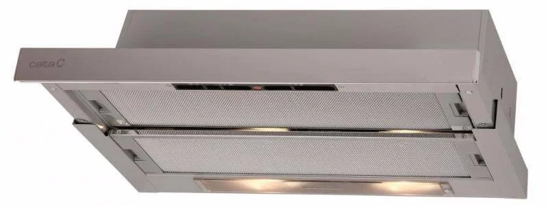 Вбудована телескопічна витяжка CATA TF 5260, виконана з нержавіючої сталі, забезпечує ефективне очищення повітря на кухні, гармонійно інтегруючись у меблевий гарнітур. Її конструкція дозволяє висувати робочу панель лише під час використання, зберігаючи естетику кухонного простору. Модель розроблена для відведення забрудненого повітря назовні або його рециркуляції через фільтри, що робить її універсальним рішенням для різних типів вентиляційних систем.