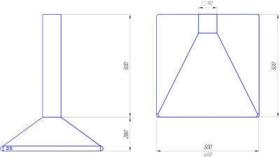 Корпус витяжки виготовлений з листового металу, який проходить термічну обробку та покривається порошковою фарбою, що забезпечує легкість у догляді та антикорозійні властивості. Пристрій працює в режимі відведення повітря, що є найбільш ефективним способом очищення, виводячи забруднене повітря назовні через повітропровід діаметром 90 мм. Продуктивність витяжки становить 200 м³/год, що дозволяє швидко очищати повітря в приміщеннях середнього розміру. Механічне кнопкове керування забезпечує простий та інтуїтивно зрозумілий вибір однієї з двох швидкостей роботи двигуна. Вбудована галогенна лампа потужністю 25 Вт ефективно освітлює робочу поверхню, створюючи комфортні умови для приготування їжі.