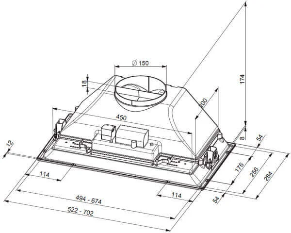 - Гнучкість встановлення: Можливість роботи в режимах відведення повітря або рециркуляції дозволяє використовувати витяжку як з підключенням до вентиляційного каналу (діаметр 150/120 мм), так і без нього.