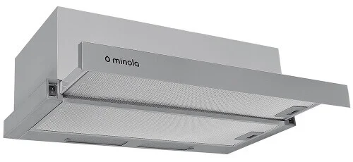 Вбудована телескопічна витяжка Minola HTL 610 з корпусом з нержавіючої сталі призначена для ефективного очищення повітря на кухні, забезпечуючи його свіжість та комфортні умови під час приготування їжі. Завдяки своїй конструкції, вона інтегрується в кухонну шафу, залишаючи видимою лише висувну панель, що дозволяє зберегти естетику інтер'єру та оптимізувати простір. Модель працює у двох режимах: відведення забрудненого повітря назовні через вентиляційний канал та рециркуляції, при якій повітря очищується за допомогою фільтрів і повертається до приміщення.