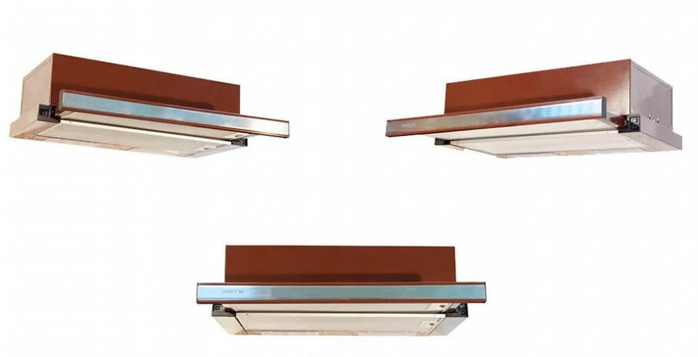 Телескопічна кухонна витяжка Profit M Телескоп ЕКО 420 50 коричневий призначена для ефективного очищення повітря на кухні, забезпечуючи продуктивність до 420 м³/год. Ця модель шириною 50 см інтегрується в кухонні меблі, що дозволяє зберегти єдиний стиль інтер'єру та оптимізувати використання простору. Корпус витяжки виготовлений з листового металу, який проходить термічну обробку та покривається порошковою фарбою, що забезпечує легкість у догляді та стійкість до корозії.