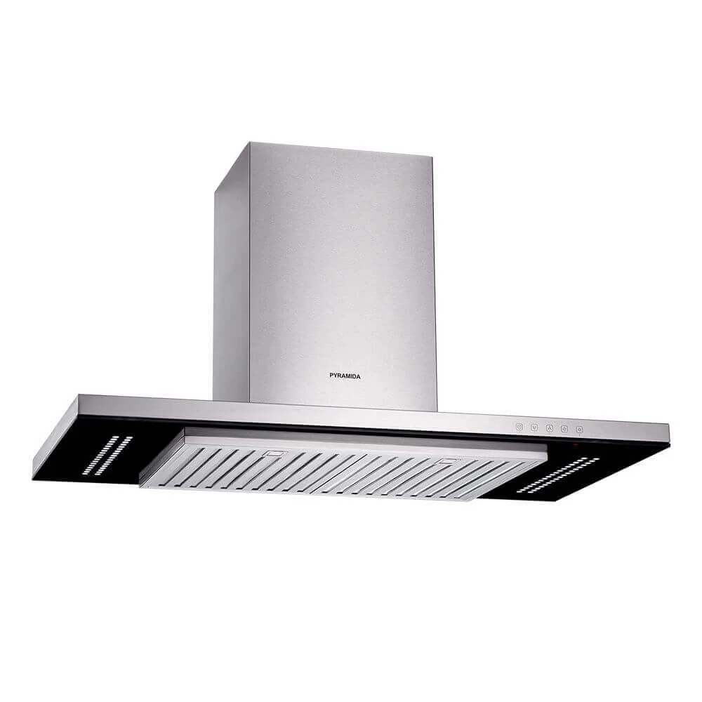 Кухонна витяжка Pyramida HEF 22 (P-900 MM) вирізняється сучасним Т-подібним дизайном та оснащена 4-швидкісним мотором нового покоління AERO2JET. Цей мотор забезпечує високу продуктивність при мінімальному рівні шуму, ефективно очищаючи повітря на кухні.