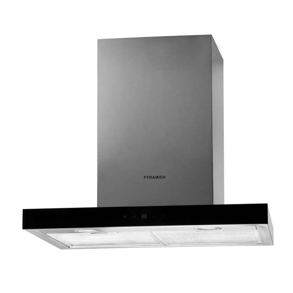 Кухонна витяжка Pyramida НЕF 22 (H-900 мм) чорного кольору є ефективним рішенням для очищення повітря, поєднуючи функціональність та сучасний дизайн. Ця Т-подібна модель здатна працювати як у режимі відведення, так і в режимі рециркуляції, забезпечуючи швидке усунення неприємних запахів та випарів з кухонного простору. Завдяки високій продуктивності до 1200 м³/год, вона ефективно очищає повітря навіть у великих приміщеннях.