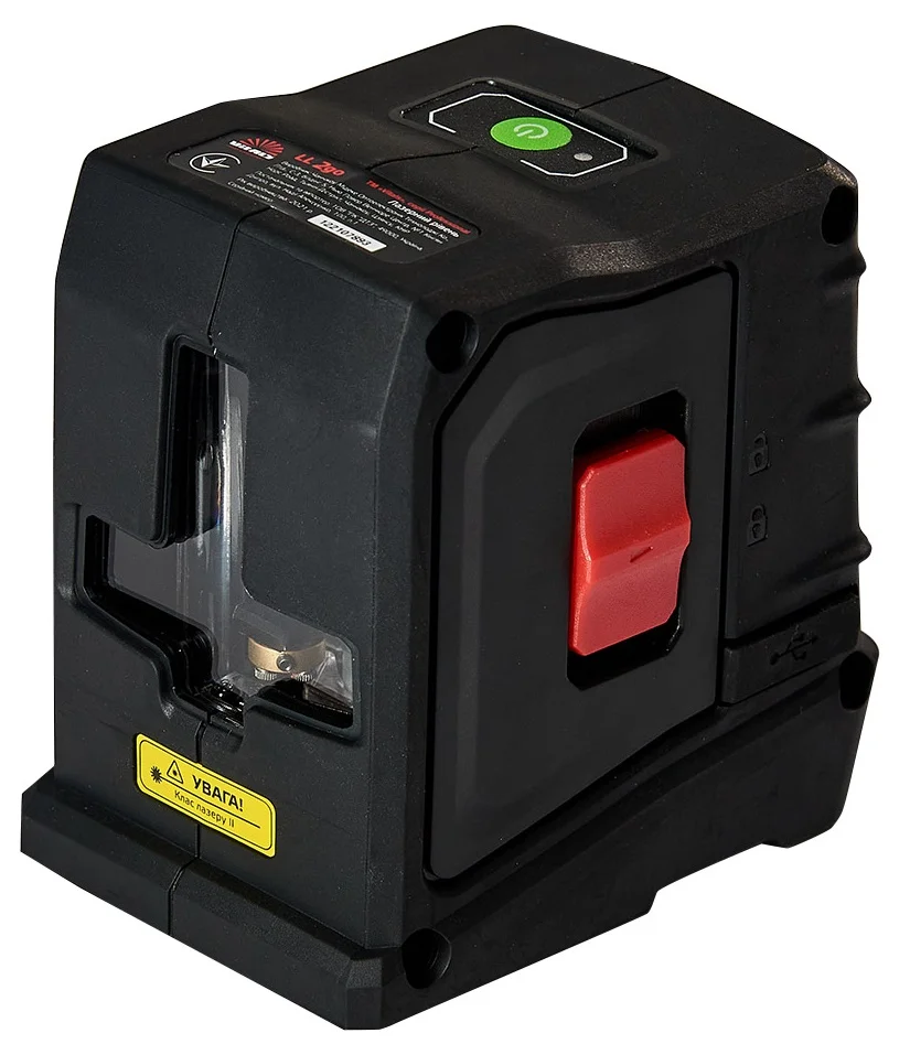 Висока точність проєктування становить ±0,3 міліметра на метр, що дозволяє отримувати максимально точні результати на відстані до 30 метрів. Рівень оснащений функцією самовирівнювання з кутом 4°±1°, що дозволяє йому автоматично коригувати положення на нерівних поверхнях. У разі більшого нахилу пристрій сигналізує про це. Для розмітки під заданим кутом вручну передбачено блокування маятника. Живлення здійснюється від універсального Li-ion акумулятора типорозміру 18650 ємністю 2200 мА·год, що забезпечує до 7 годин автономної роботи. Також можлива робота від мережі з паралельною зарядкою батареї.