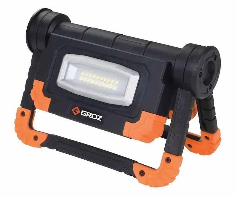 Забезпечуючи світловий потік у 1000 люменів при потужності 20 Вт, акумуляторний світлодіодний прожектор Groz LED-385RM є універсальним рішенням для освітлення робочих зон та використання під час активного відпочинку. Він оснащений двома світлодіодними панелями по 10 Вт кожна, що дозволяє ефективно освітлювати простір на відстані до 20 метрів.