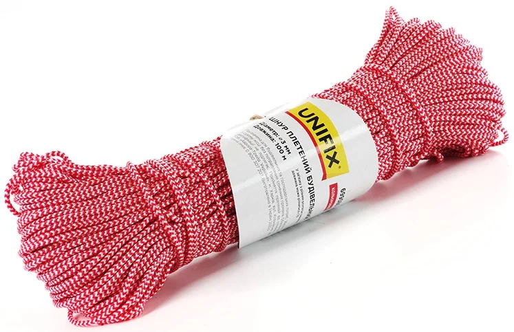 Плетена конструкція з поліпропілену надає шнуру Unifix підвищену міцність на розрив та стійкість до зношування. Діаметр 1.5 мм та довжина в 100 метрів роблять його зручним для розмітки, тимчасового кріплення, упаковки та інших господарсько-будівельних задач.