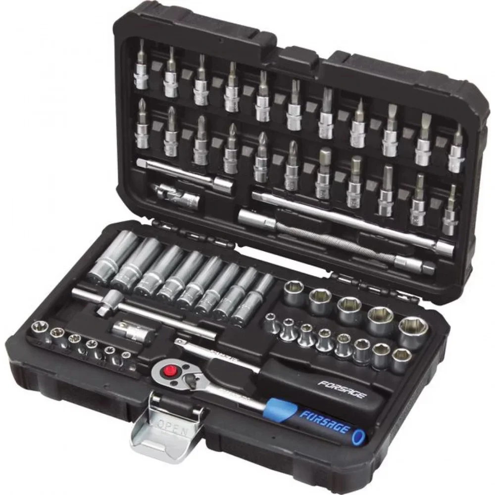 Універсальний набір інструментів Forsage F-2571-5, що складається з 57 предметів з приєднувальним квадратом 1/4", призначений для широкого спектра робіт з ремонту та технічного обслуговування автомобілів, а також для виконання різноманітних побутових завдань. Усі компоненти набору виготовлені з високоякісної хром-ванадієвої сталі (CrV), що забезпечує їхню міцність, зносостійкість та тривалий термін служби.