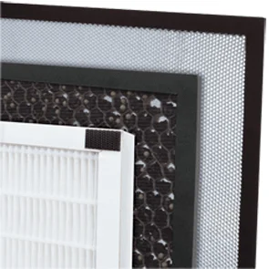 Система очищення включає Pre-Carbon фільтр для утримання великих частинок, протиалергенний HEPA-фільтр, який затримує до 99% частинок розміром до 0.3 мкм, та VOC-фільтр (вугільний фільтр з цеолітом) для абсорбції неприємних запахів та хімічних сполук, таких як формальдегіди та CO2. Додатково, прилад оснащений УФ-лампою для знезараження повітря.