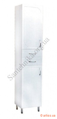 Напольный пенал для ванной комнаты с полками внутри для средств повседневного пользования. Корпус выполнен из ДСП с двухсторонней ламинацией белого цвета, толщина 16 мм. Фасады из MDF с двухсторонней ламинацией, толщина 16 мм. Фасады и внешние поверхности окрашены эмалью с высокой степенью блеска.