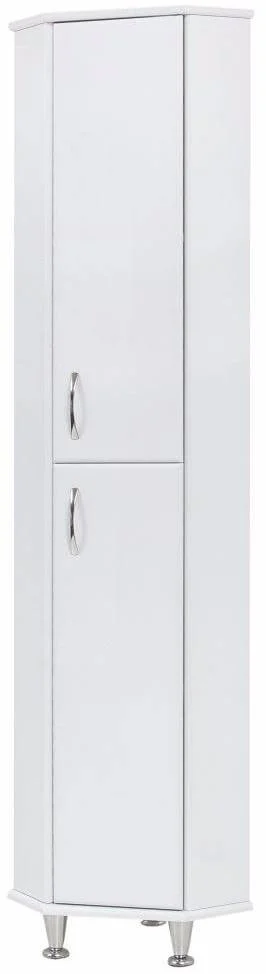 Підлоговий пенал висотою 1970 мм підходить для вертикального зберігання побутової хімії, запасних рушників або приладів для догляду. Його кутове виконання робить його практичним рішенням для встановлення у вільному куті приміщення, доповнюючи комплект меблів для ванної.