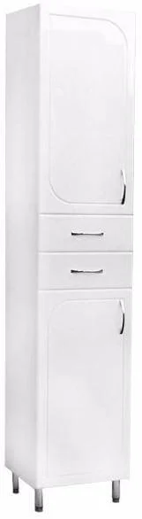 Підлоговий пенал для ванної кімнати має висоту 1900 мм, що дозволяє ефективно використовувати вертикальний простір. Конструкція моделі включає два видвижні ящики та два відділи з дверцятами, які відкриваються зліва для зручного доступу.