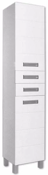 Підлоговий пенал для ванної кімнати має висоту 1900 мм, що забезпечує зручний доступ до вмісту та ефективно використовує вертикальний простір. Конструкція виконана з ламінованої ДСП товщиною 16 мм для корпусу та МДФ для фасадів, що забезпечує стійкість до вологи. Внутрішній простір організований за допомогою полиць для зберігання засобів гігієни та побутових дрібниць.