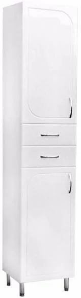 Конструкція пенал-тумби базується на корпусі з ламінованої ДСП товщиною 16 мм, що забезпечує стійкість до вологи в умовах ванної кімнати. Фасади виготовлені з МДФ, пофарбовані високоглянцевою емаллю, що надає виробу сучасний вигляд та спрощує догляд за поверхнею. Внутрішній простір організований за допомогою полиць, призначених для зберігання косметичних засобів, побутової хімії та інших дрібних речей.